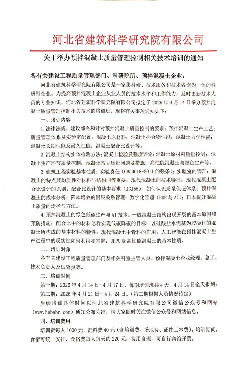 關(guān)于舉辦預(yù)拌混凝土質(zhì)量管理控制相關(guān)技術(shù)培訓(xùn)的通知