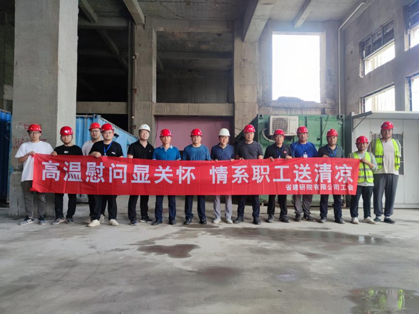 院公司總經(jīng)理葉金成同志及同行領(lǐng)導(dǎo)頂著烈日、冒著酷暑,來到工地一線實(shí)地調(diào)研指導(dǎo),并為全體參建員工送來關(guān)懷慰問。巖土所所長李金山同志將項(xiàng)目概況和現(xiàn)場(chǎng)進(jìn)展情況進(jìn)行了介紹。