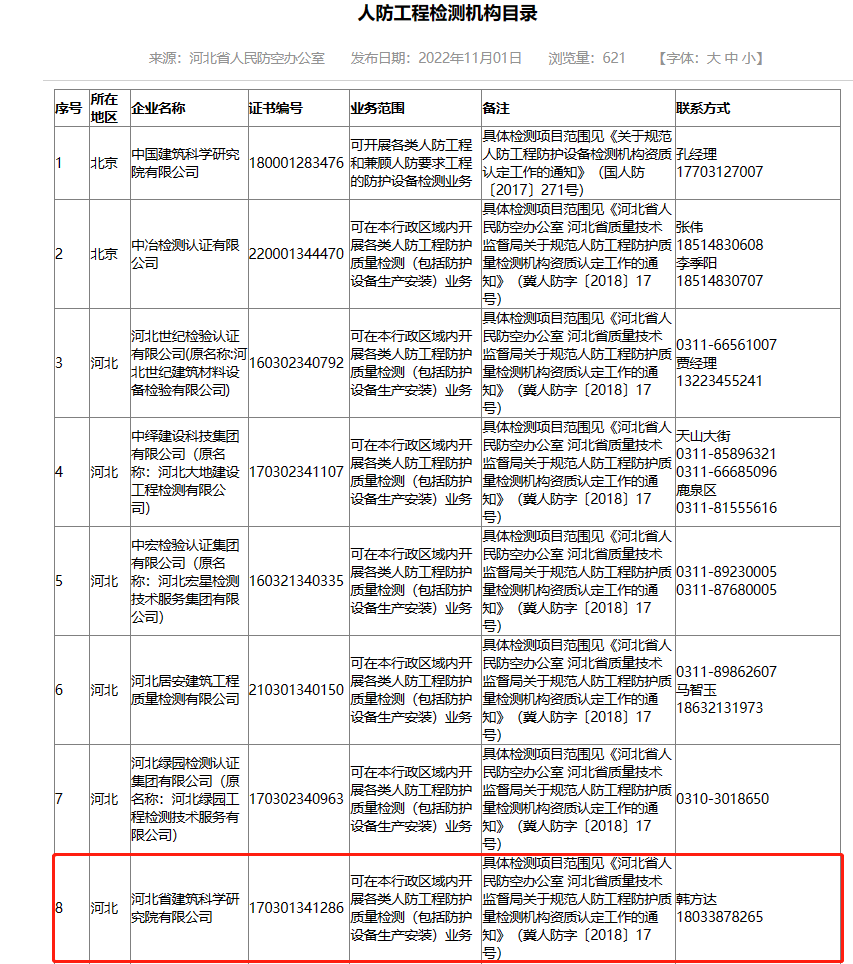 河北省建筑科學(xué)研究院有限公司人防工程檢測(cè)機(jī)構(gòu)證明